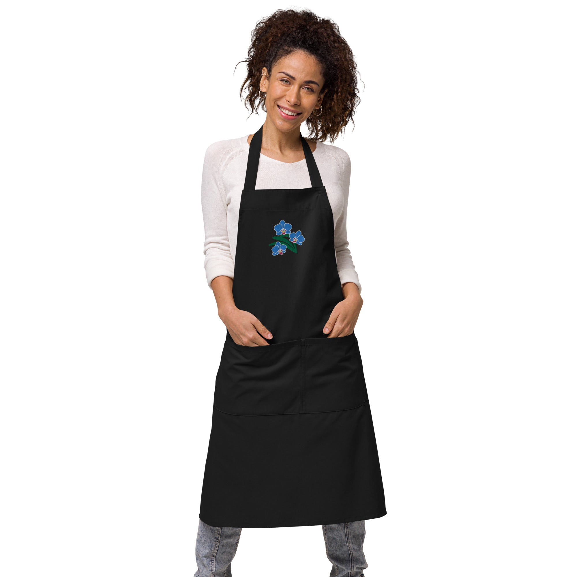 Our eye-catching “Blue Orchids" design makes this apron a great gift for Mother's Day, birthdays, dinner parties, and more. It can also be a lovely housewarming gift to a friend or family member.