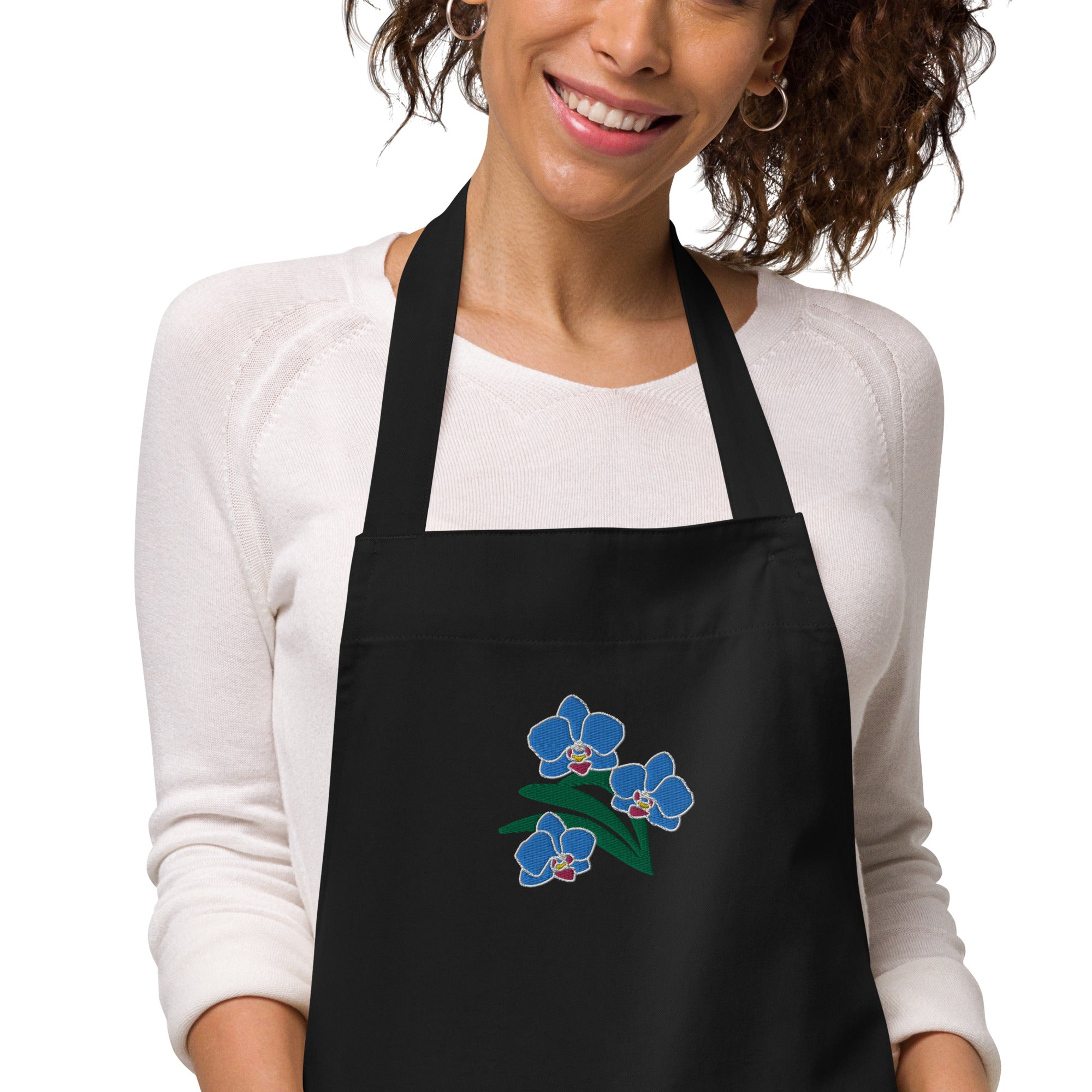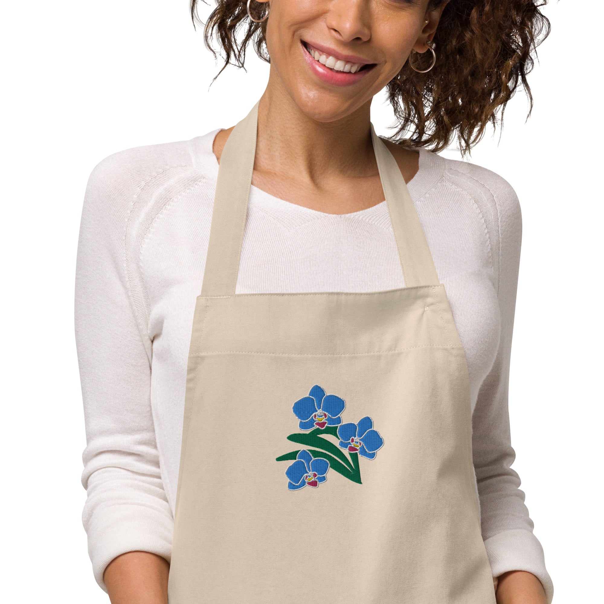 "Blue Orchids" Organic Embroidered Apron