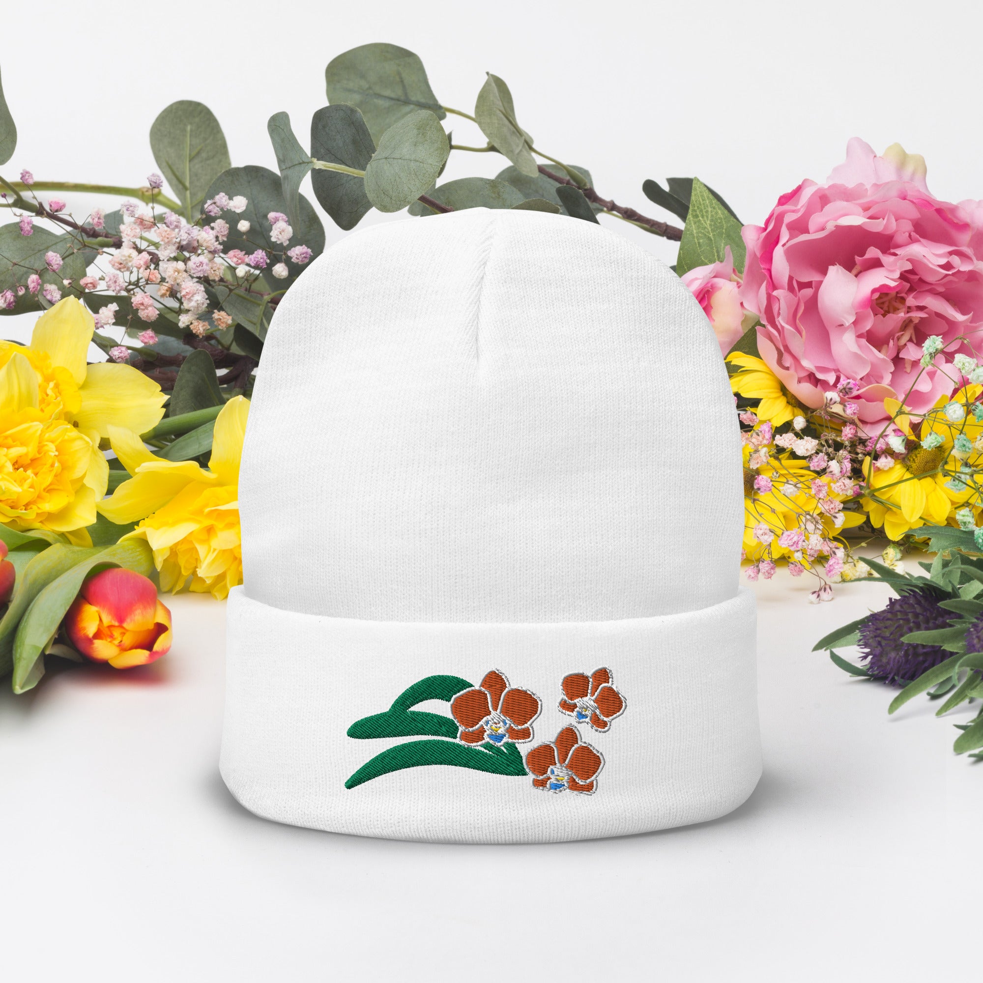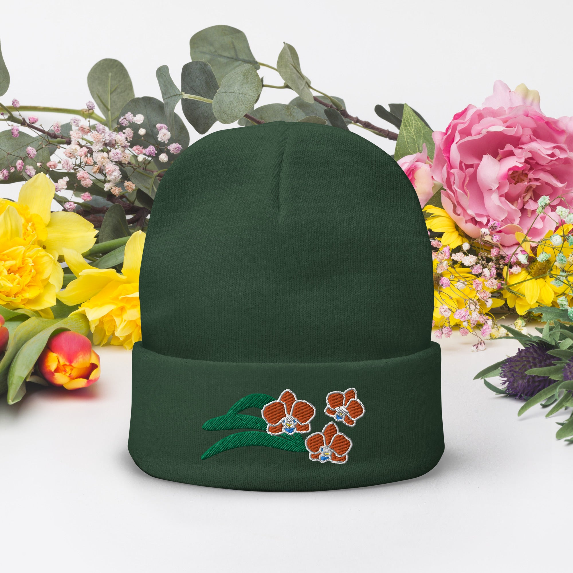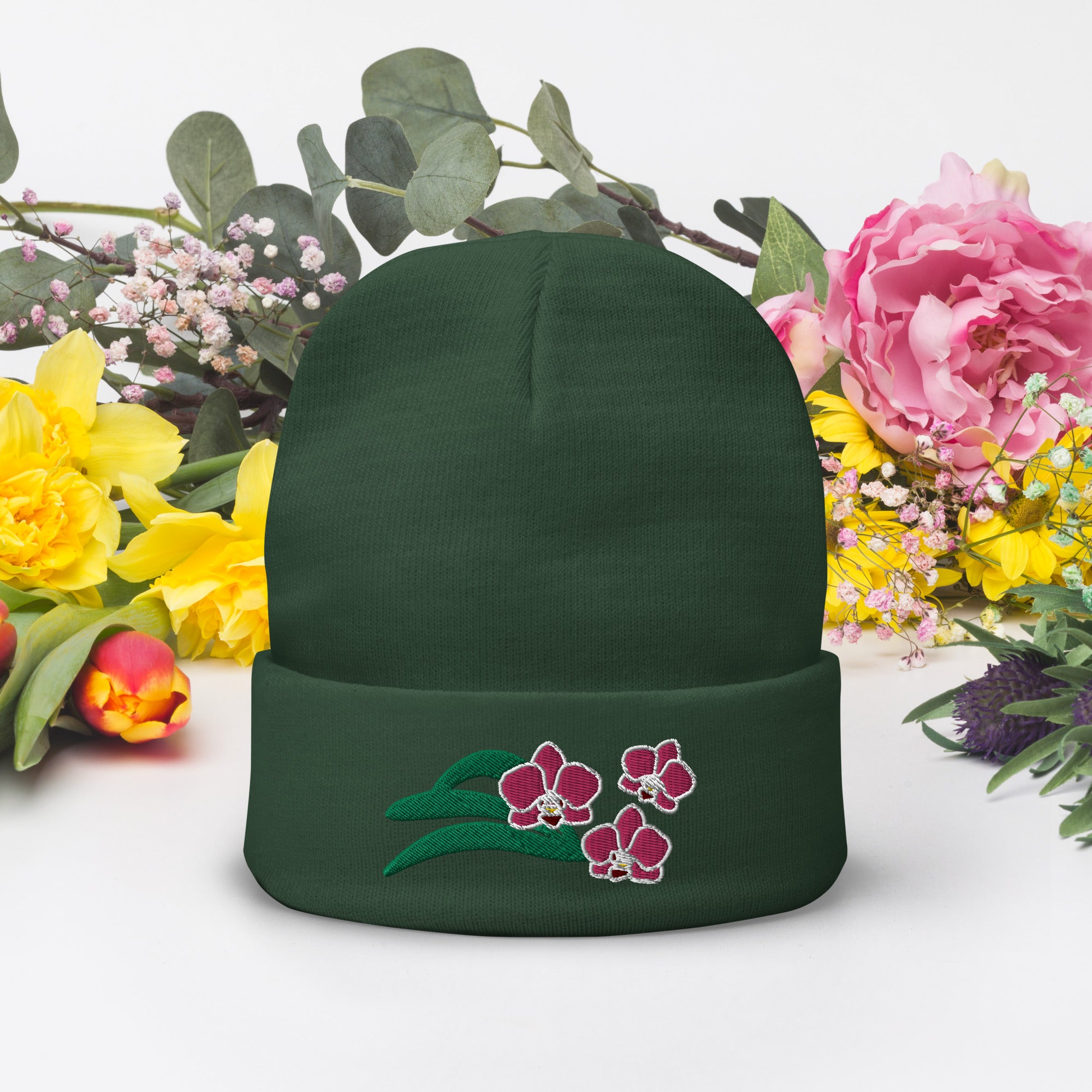 This beauty features our unique “Charming Orchids” embroidery design. It may even become one of your favorite headwear. Whether you're hitting the slopes, exploring the city, or relaxing at home, this beanie will keep you warm, comfortable, and fashionable.