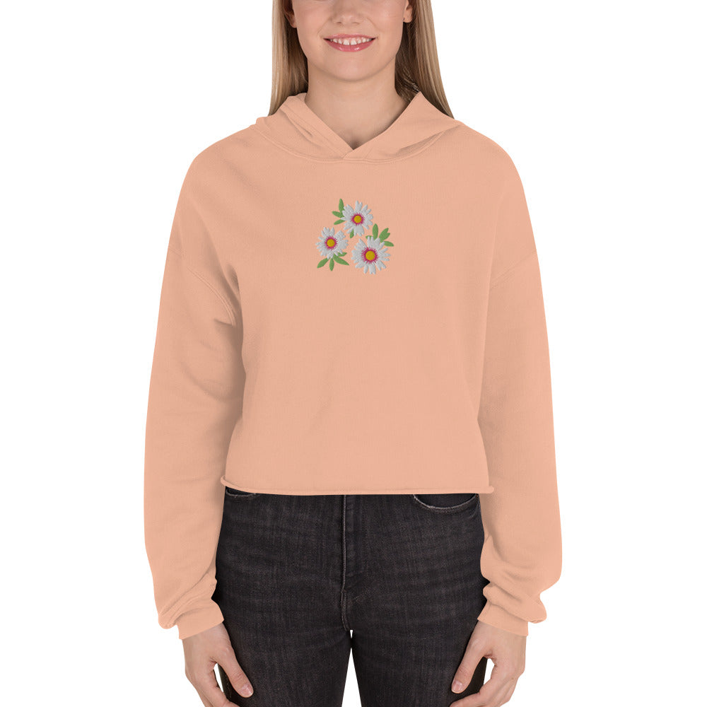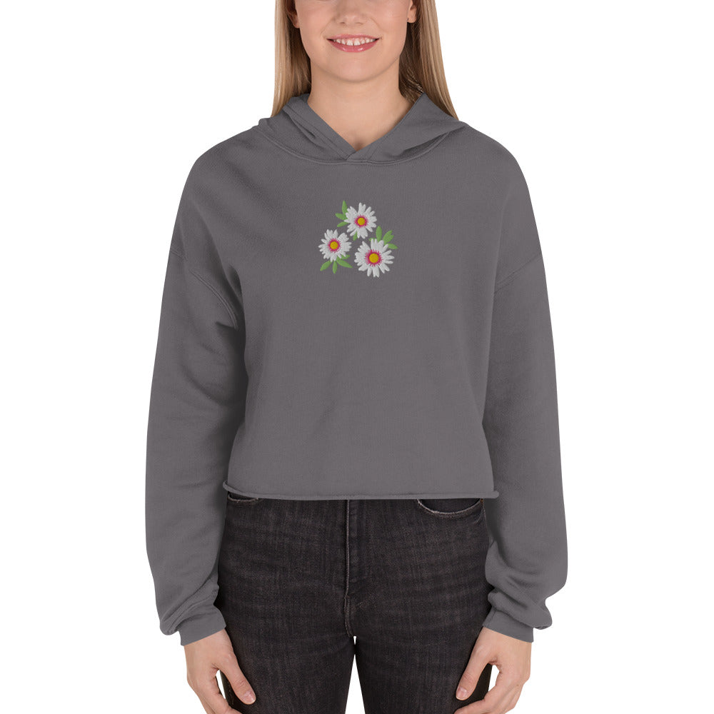 "White Daisies" Embroidered Cropped Hoodie