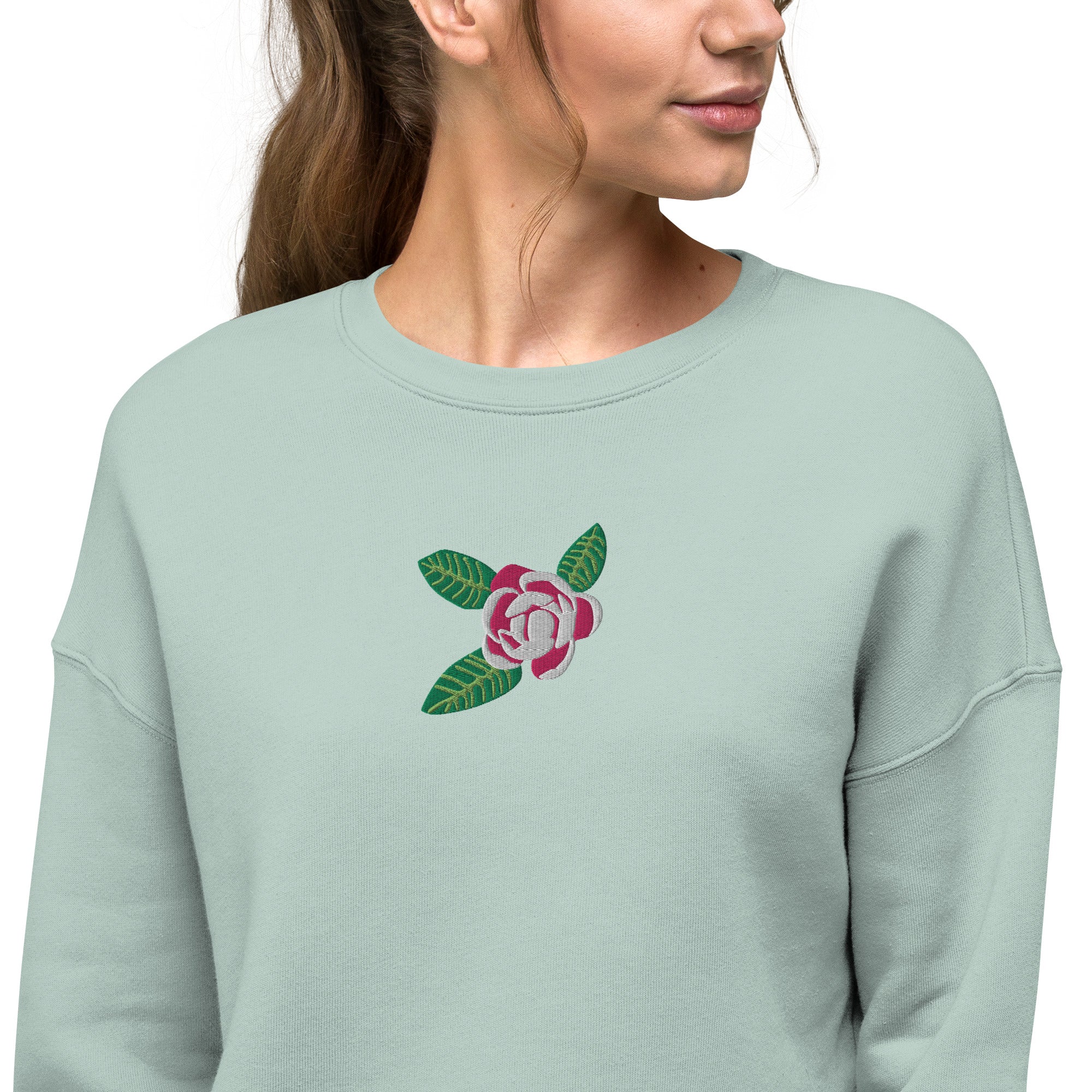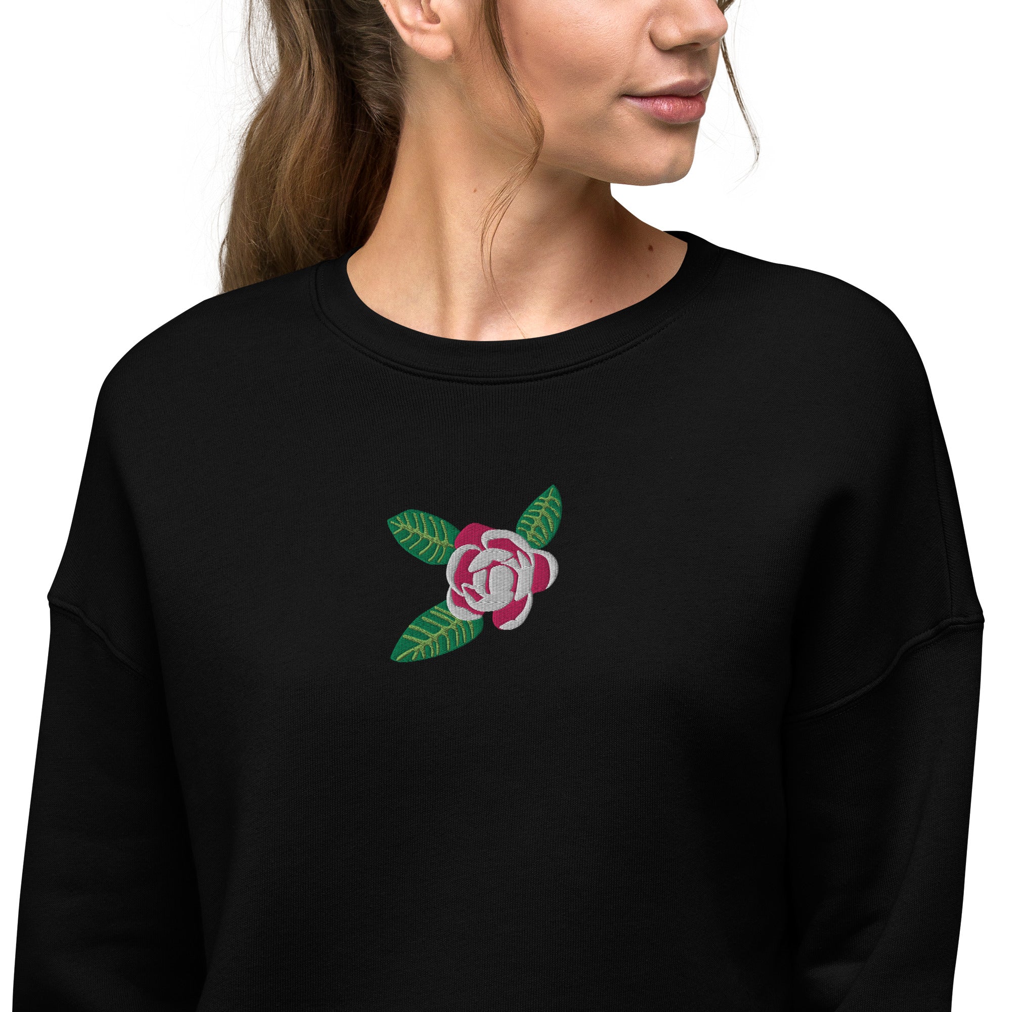 "Pink Magnolia" Embroidered Cropped Sweatshirt