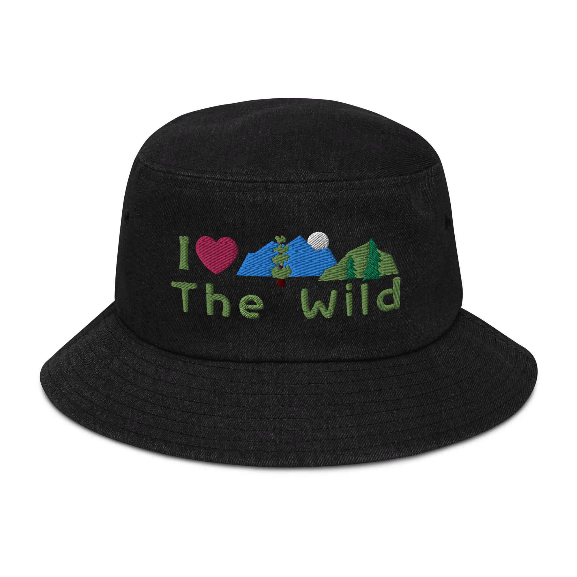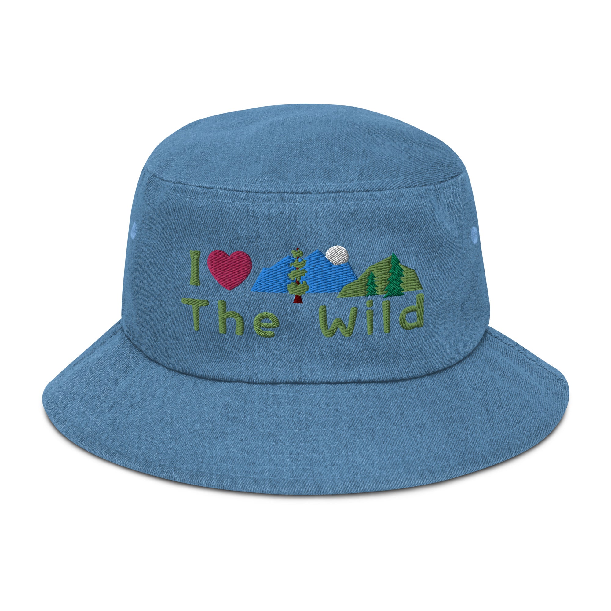 "I Love the Wild" Embroidered Denim Bucket Hat