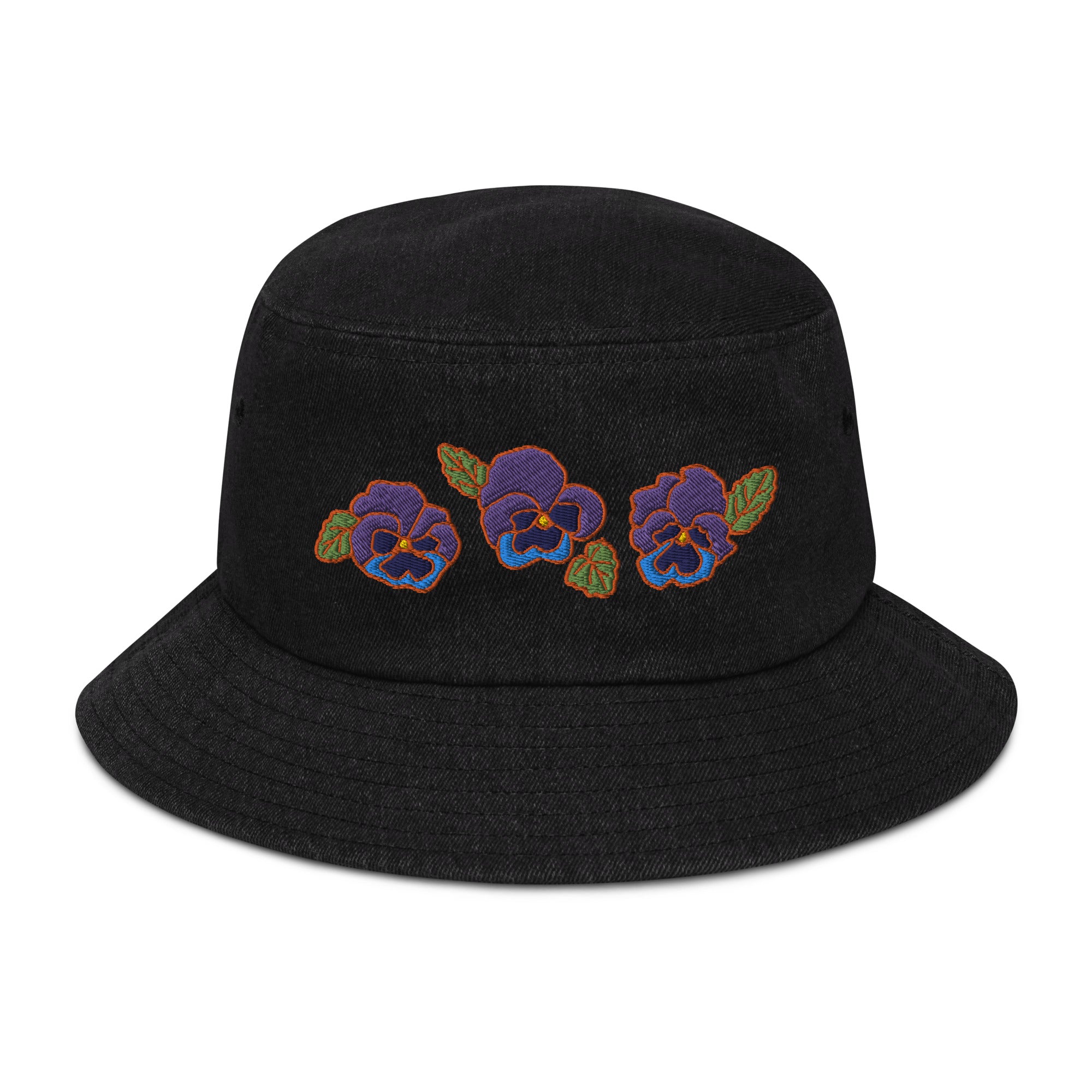 "Purple Violas" Embroidered Denim Bucket Hat