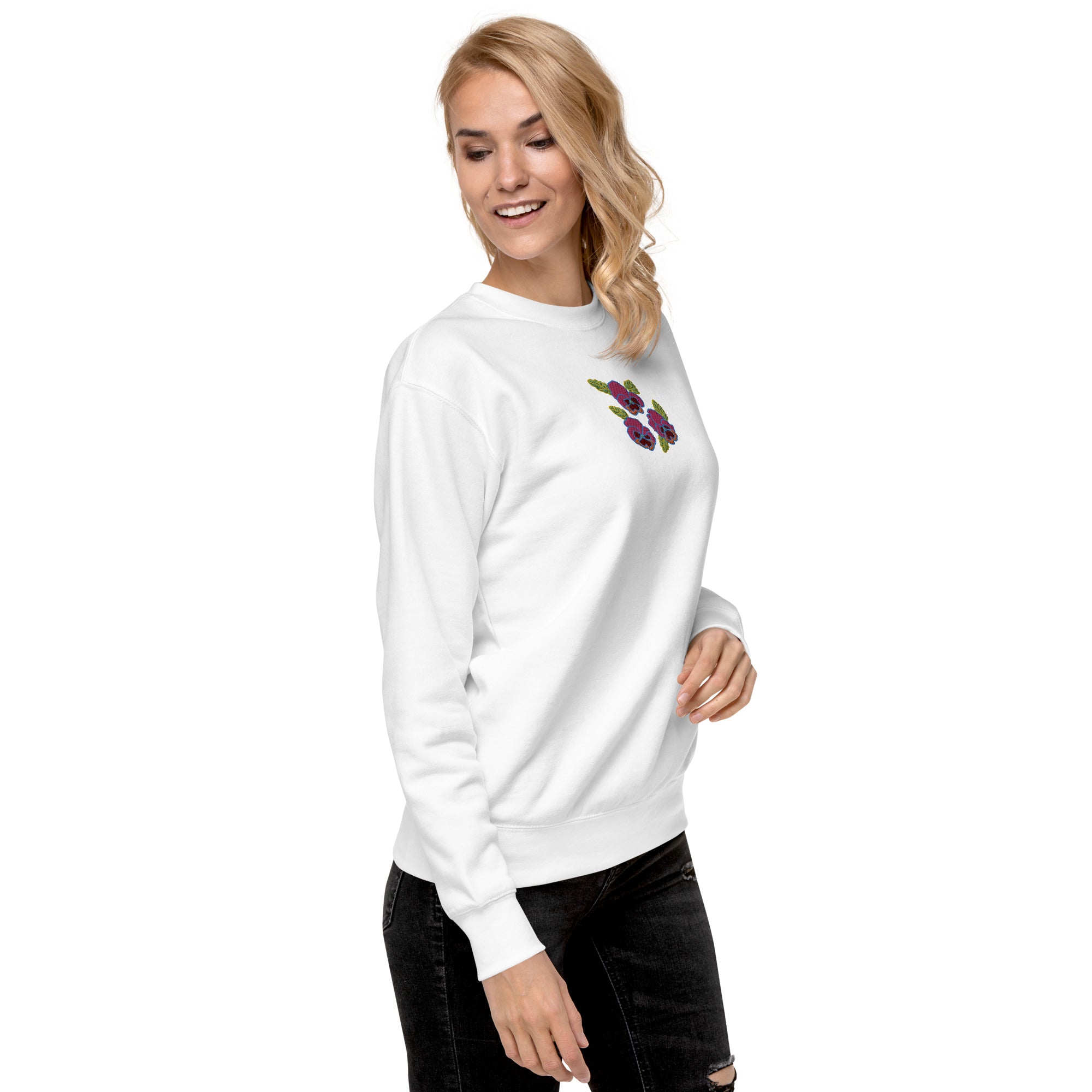 "Pink Violas" Embroidered Sweatshirt