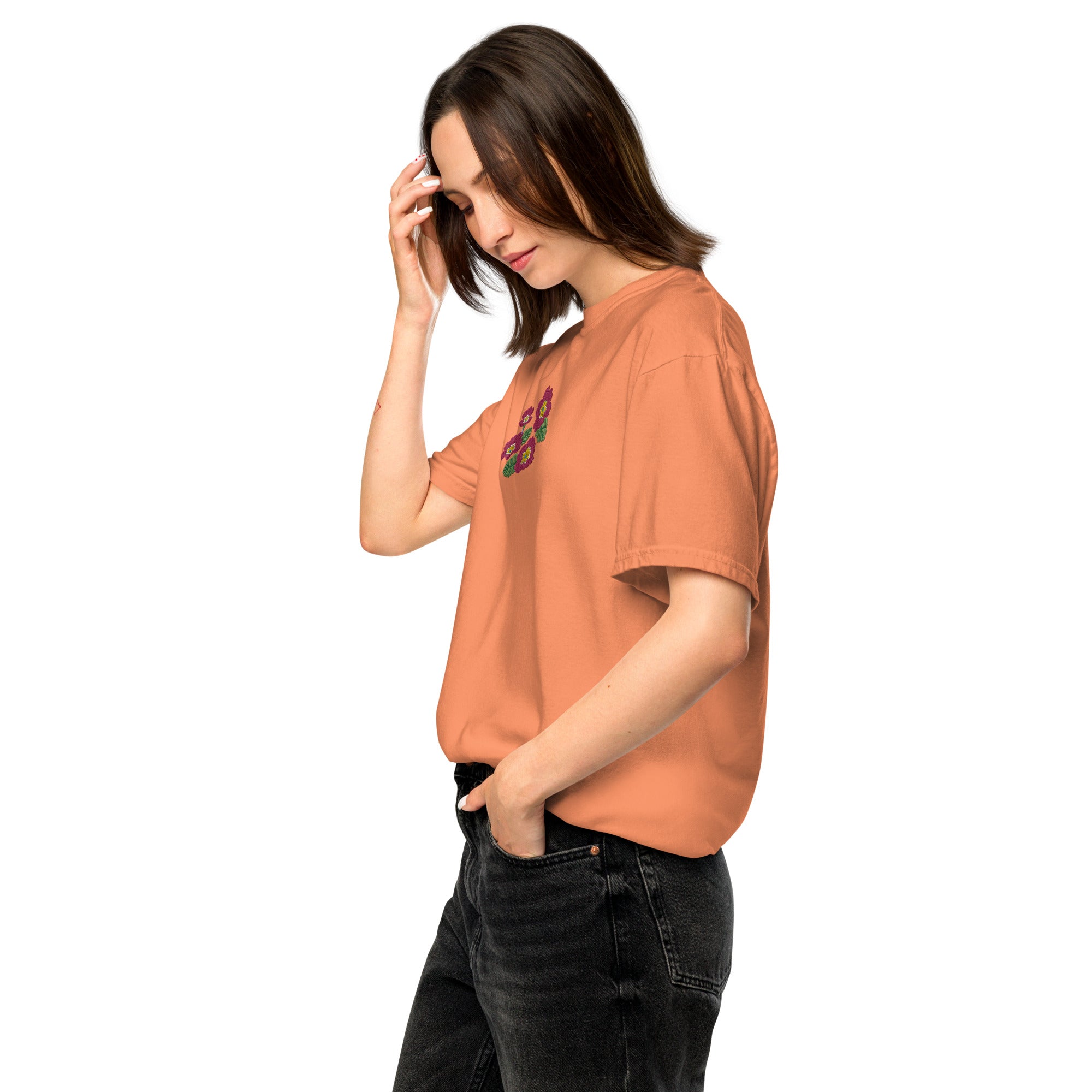 Are you looking for a comfortable and beautiful T-shirt that showcases your style? Look no further than our Garment-Dyed Embroidered T-shirt.