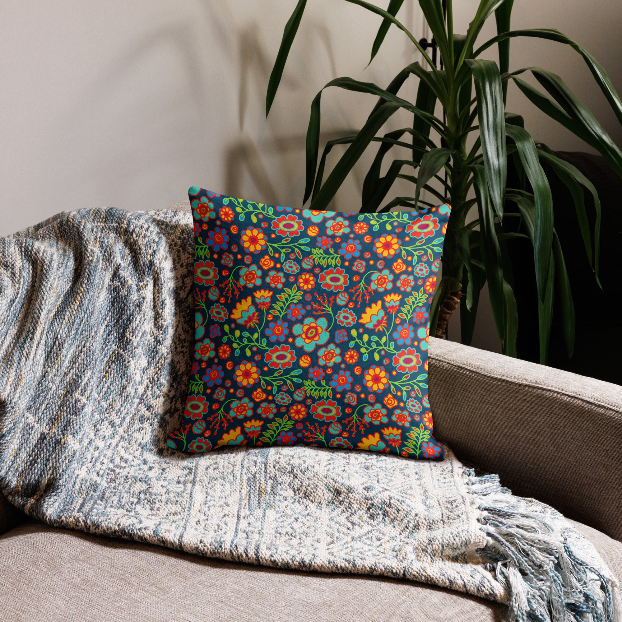 "Wildflowers on Dark Blue" Premium Pillow / Pillowcases