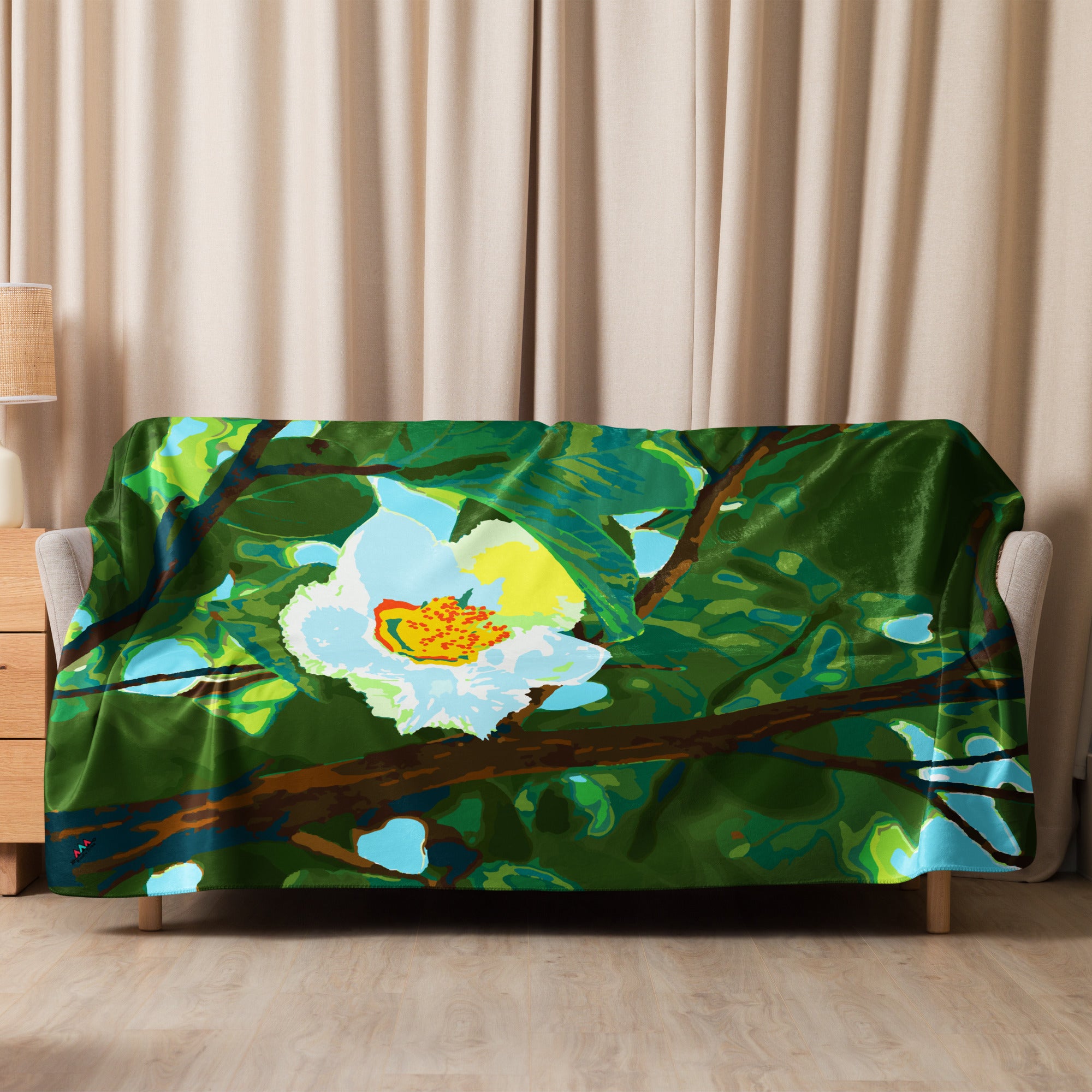 "Pretty White Flower" Sherpa Blanket